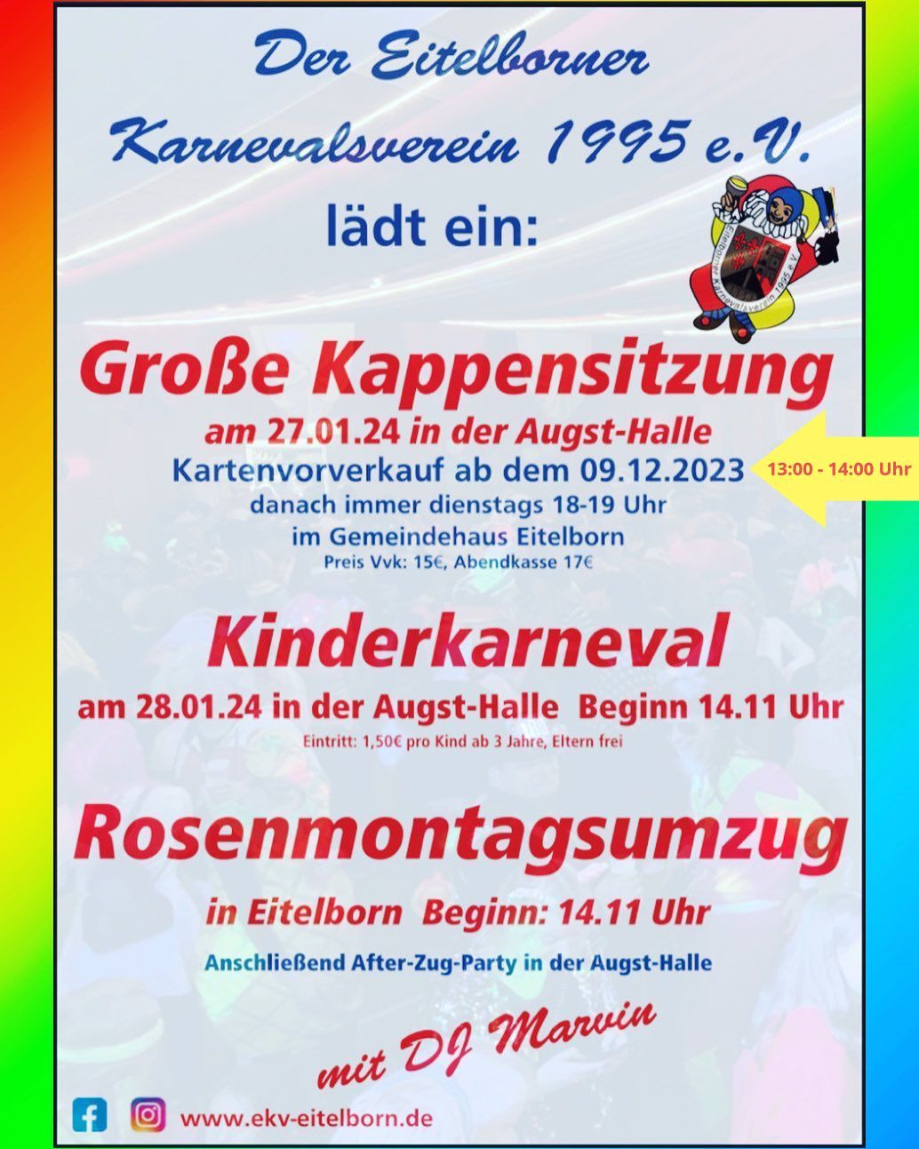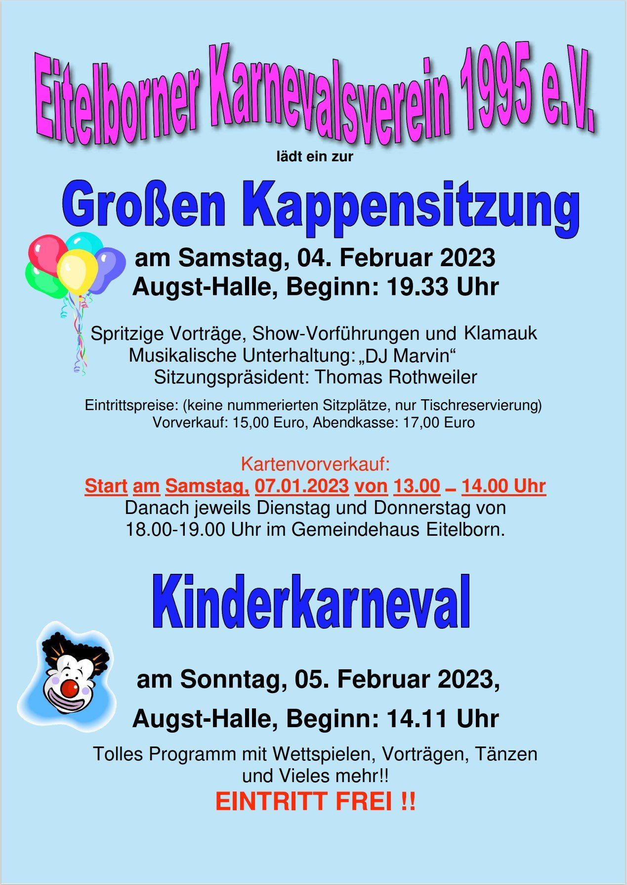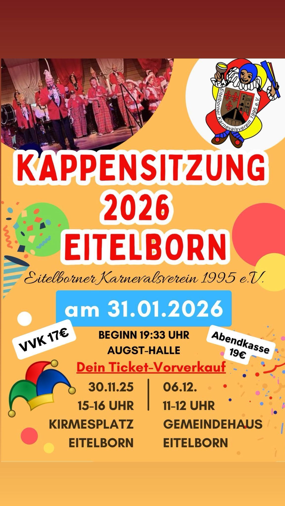 Liebe Eitelborner Bürgerinnen und Bürger, liebe Freunde und Gönner des Eitelborner Karnevalsvereins 1995 e.V.
